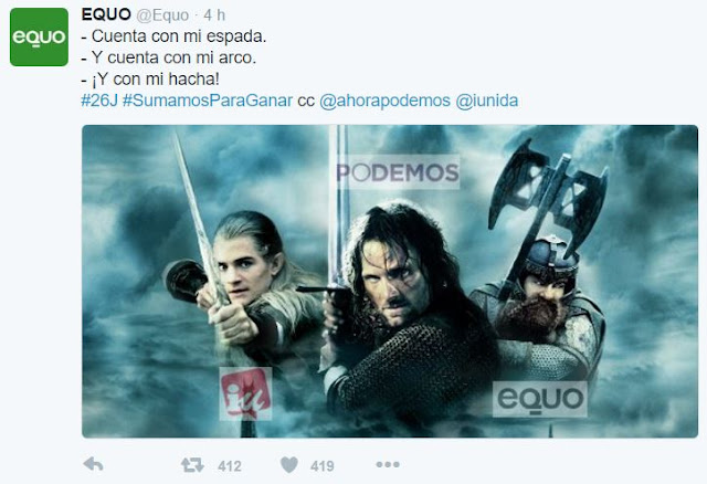 Desde luego, va a ser un esperpento histórico ver como muchos "comunistas" del PCE (mis camaradas de Partido) hacen campaña por este señor. Merece la pena comprar palomitas y sentarse a ver la función. Yo, desde luego, no pienso votar por Unidos Podemos, que es el nombre que el engendro ha adoptado finalmente. Hay líneas rojas que no se deben traspasar. Si no tragué en el 82 con un PSOE que estaba bastante más a la izquierda que estos oportunistas, no voy a tragar ahora con estos vendedores de feria que solo persiguen poltronas y vivir confortablemente de la política.